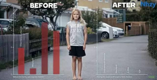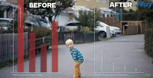 實驗選擇了一個瑞典的五口之家為對象,記錄下他們兩周全有機生活前后體內(nèi)多項殺蟲劑等化學藥劑殘留指標的變化。“實驗的結果非常有趣,因而我們拍了一部短片記錄下來。”