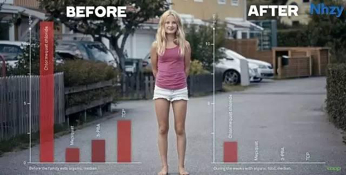 為了了解有機食物對人體的影響,瑞典環(huán)境研究中心(the Swedish Environmental Research Institute)受瑞典最大的超市 Coop 委托,調(diào)查從普通食物轉(zhuǎn)換到有機飲食之后人體內(nèi)農(nóng)藥含量的變化。這一實驗清晰地表明,有機食物能夠顯著有效地減低殺蟲劑在人體內(nèi)的含量。而傷害環(huán)境也是在間接的傷害人類自身。