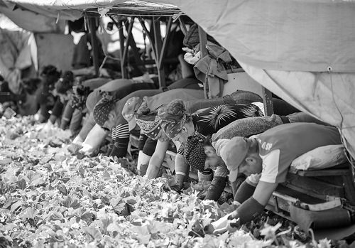 圖說(shuō):圖為在德國(guó)采摘黃瓜的羅馬尼亞務(wù)農(nóng)者。